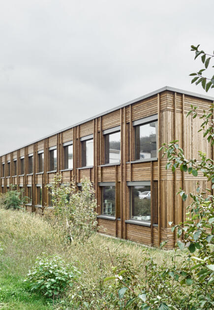 Bild Weihnachtskarte 2022: Neubau Schulhaus und Turnhalle in Holderbank AG / Fotografie: Seraina Wirz, Zürich